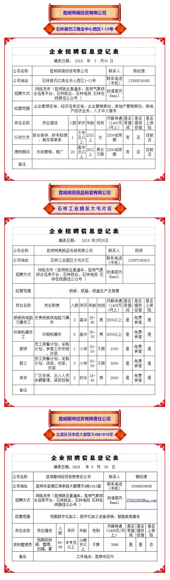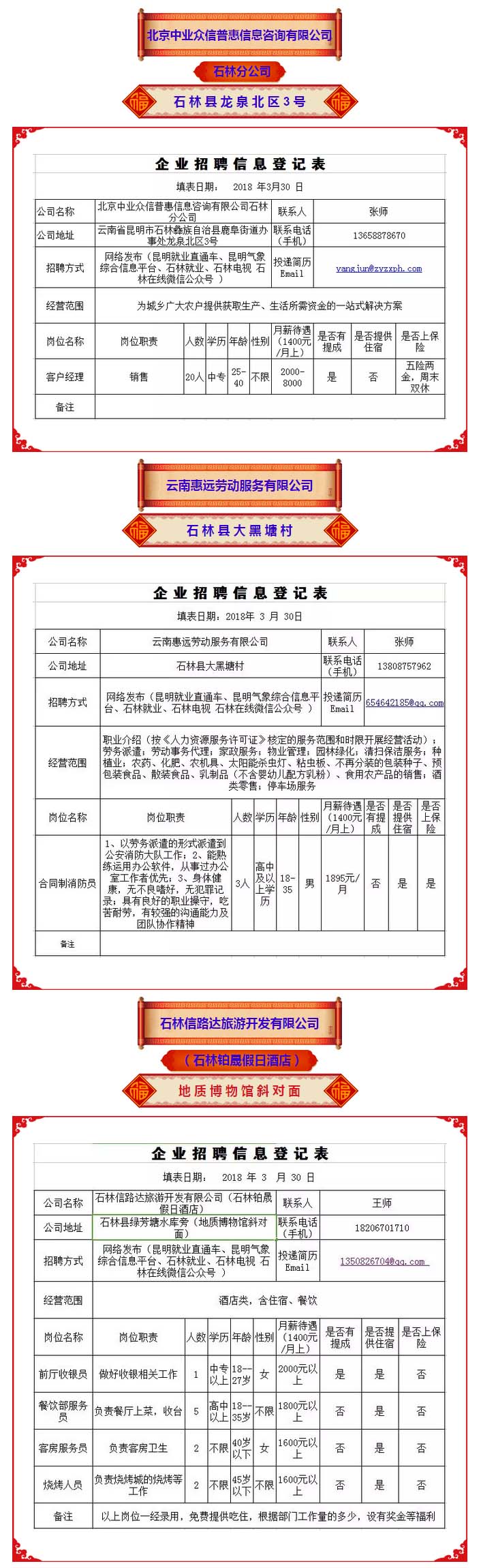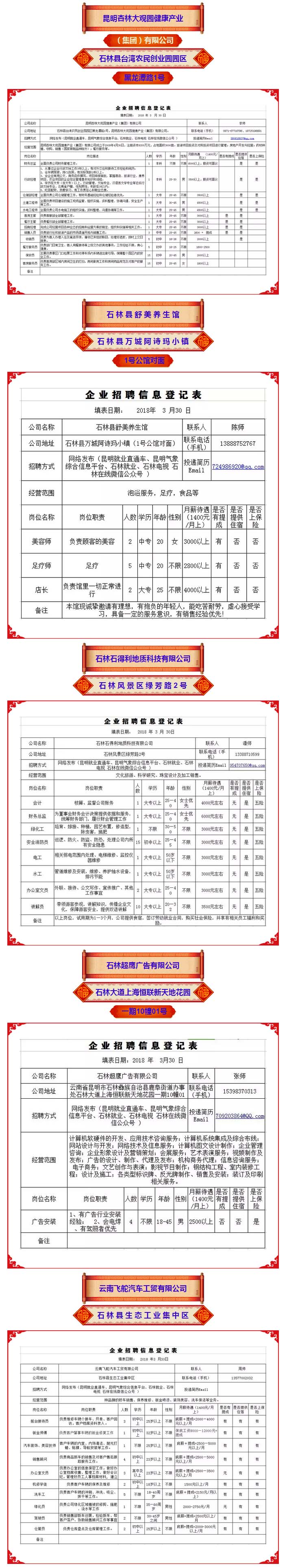 2018年石林县劳动就业服务局用工信息 (第四期)