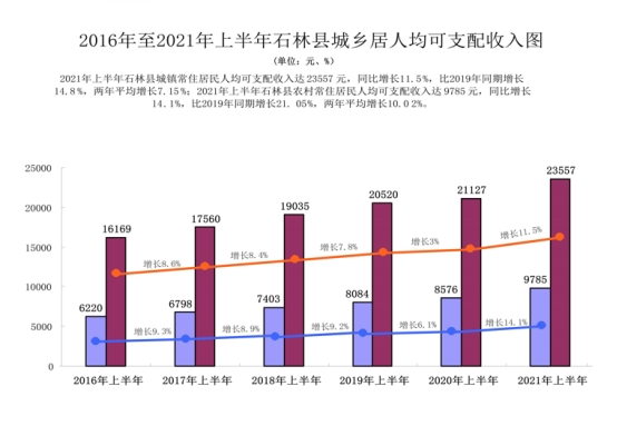 2016年至2021年上半年石林县城乡居民人均可支配收入(统计图)