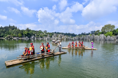 云南石林景区为游客朋友们备下了丰富多彩的旅游“盛宴”,雄奇壮美的喀斯特风光,独具韵味的民族文化,热烈奔放的歌舞演出,阿诗玛的故乡欢迎远方的客人!