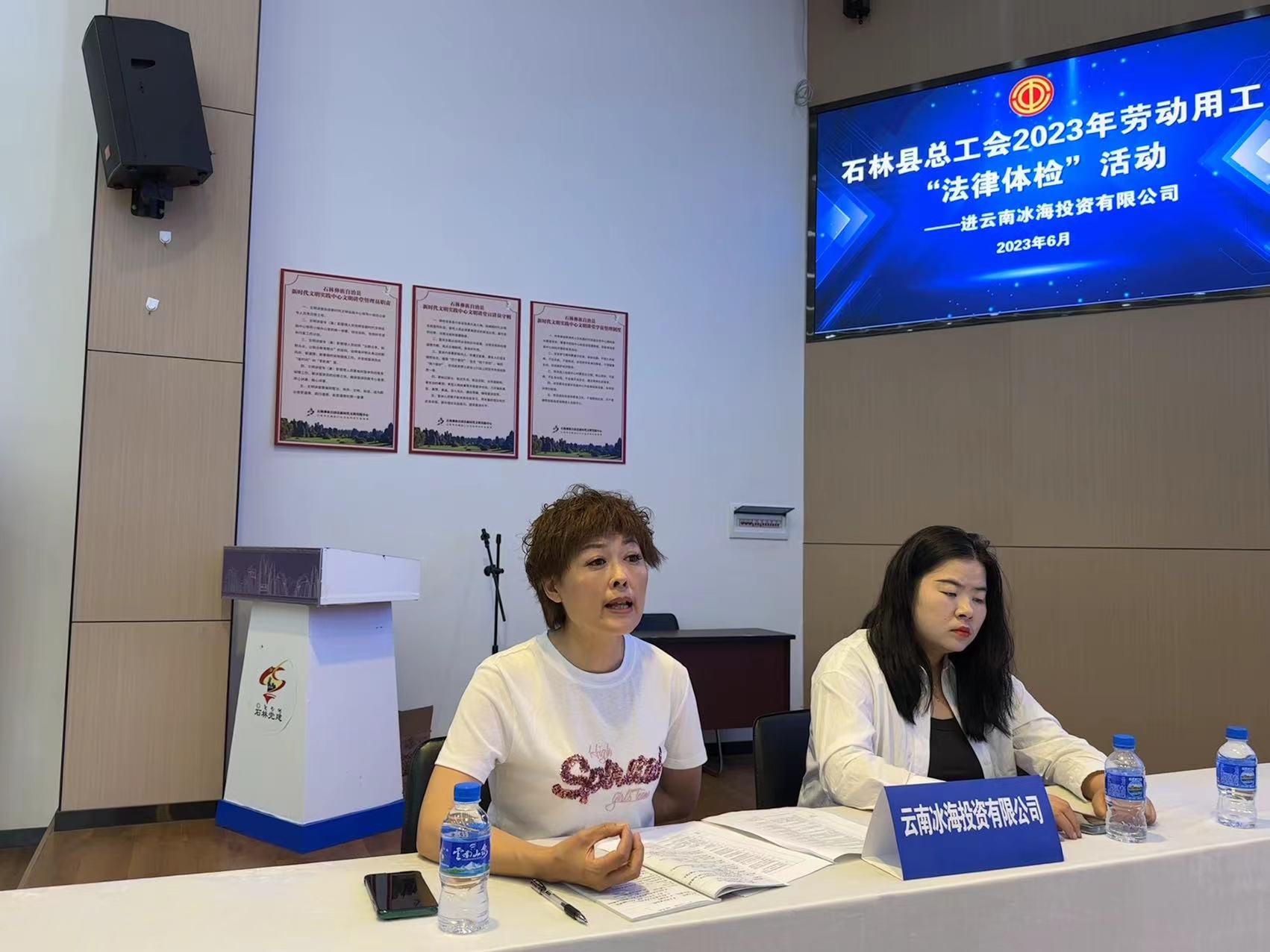 近年来,石林县积极促进企业依法决策、依法用工、依法管理、依法维权,持续推动企业构建和谐劳动关系、经济持续健康发展,扎实推进产业工人队伍建设改革工作,着力化解劳动关系矛盾,切实维护产业工人等广大职工合法权益和职工队伍稳定,维护劳动领域政治安全,为广大产业工人维护合法权益走出了新路子。6月6日——6月7日,石林县总工会联合云南星昊律师事务所对云南冰海投资有限公司、石林赫石工贸有限公司、云南东升保安服务有限责任公司、快递行业等12家企业进行了劳动用工“法律体检”活动,持续深化“尊法守法·携手筑梦”公益法律服务行动,利用法律体检“小切口”,做好产业工人维权“大服务”。