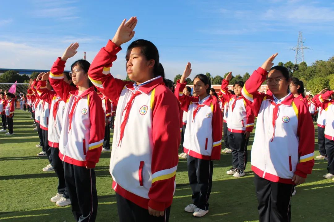 “我是石林鹿阜中学的学生……”随后,全体学生右手握拳,庄严宣誓。