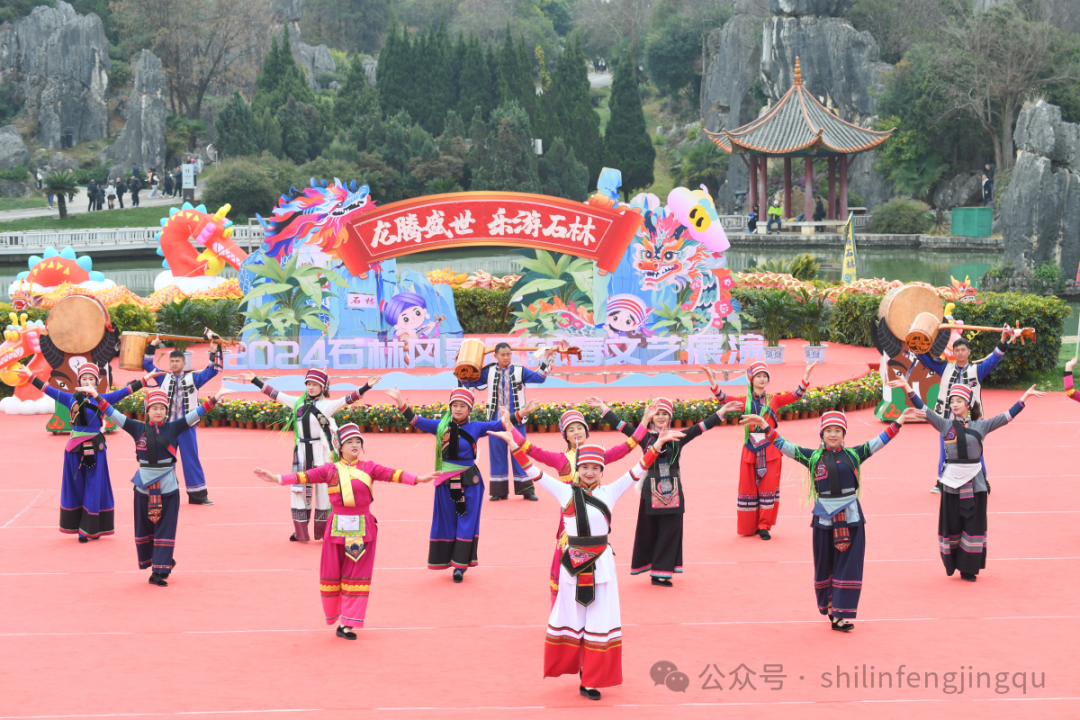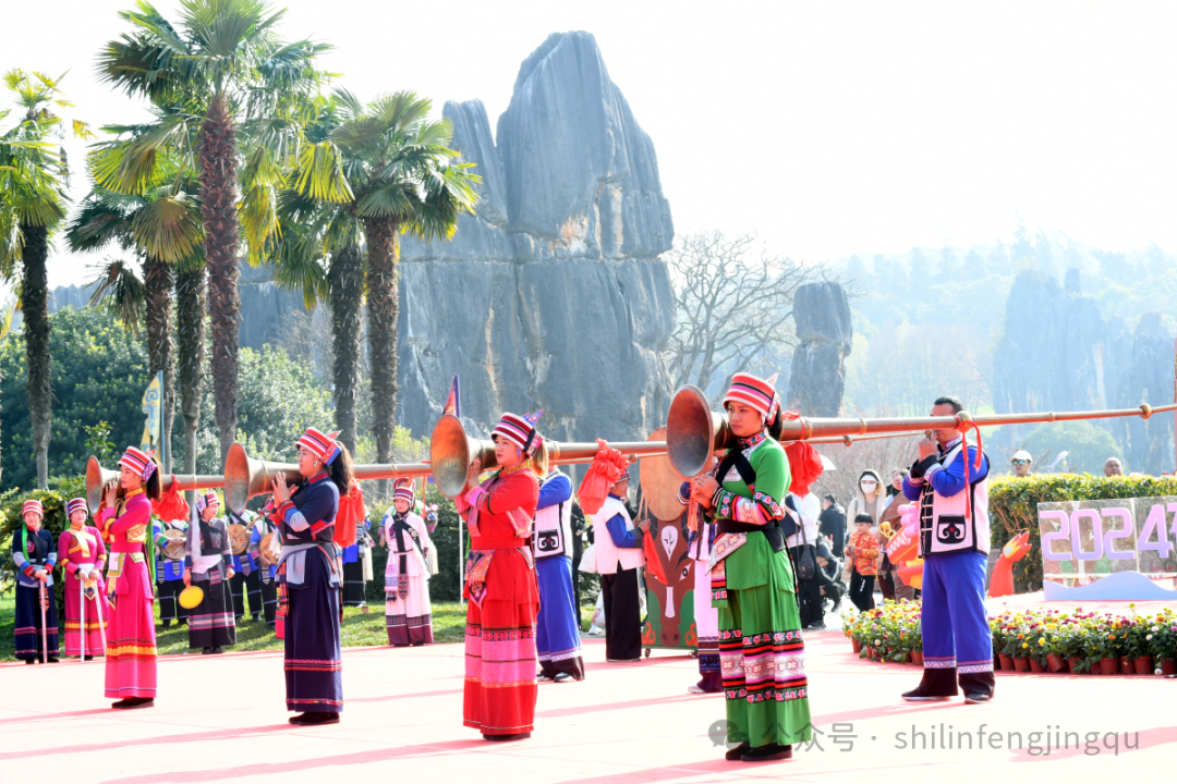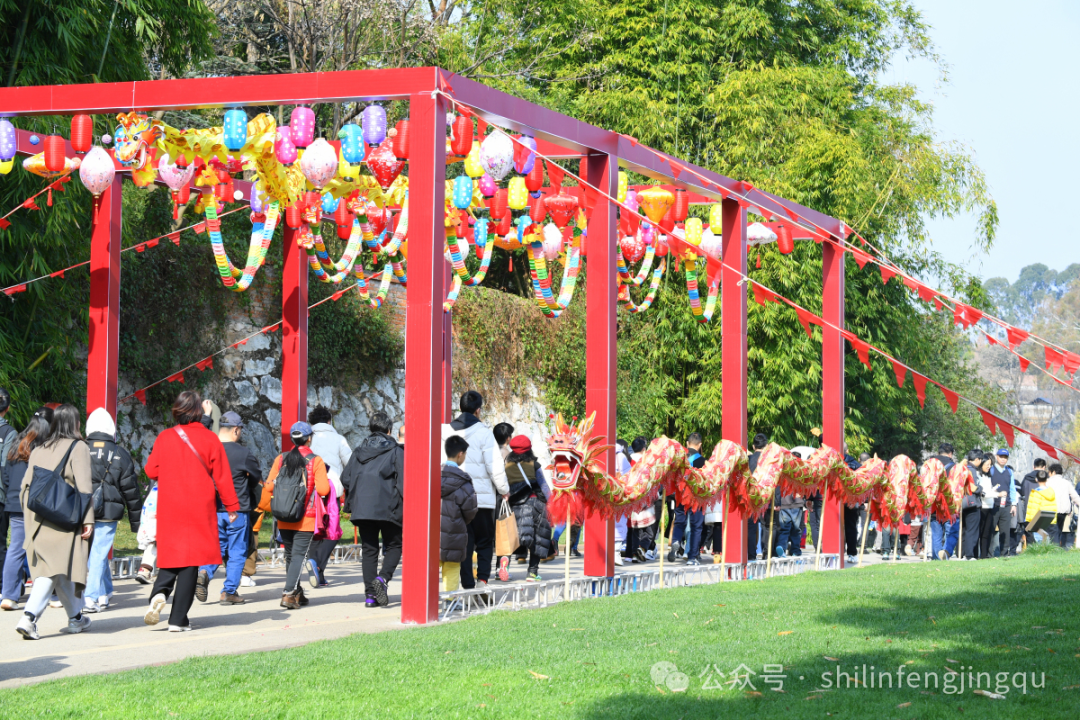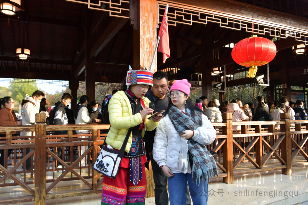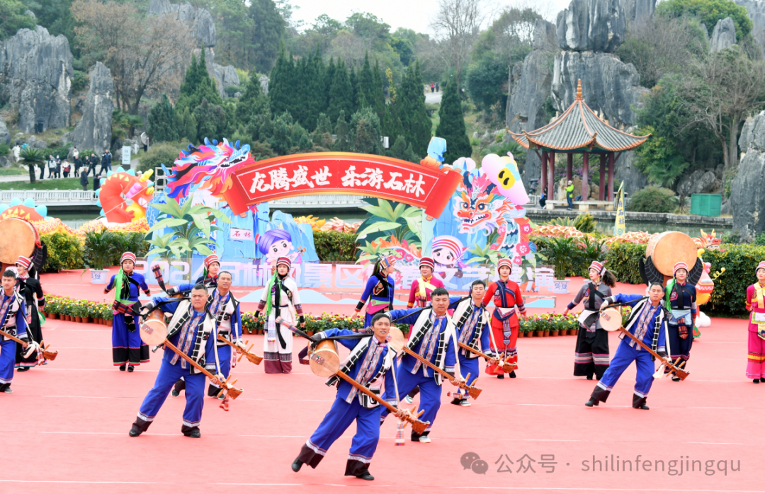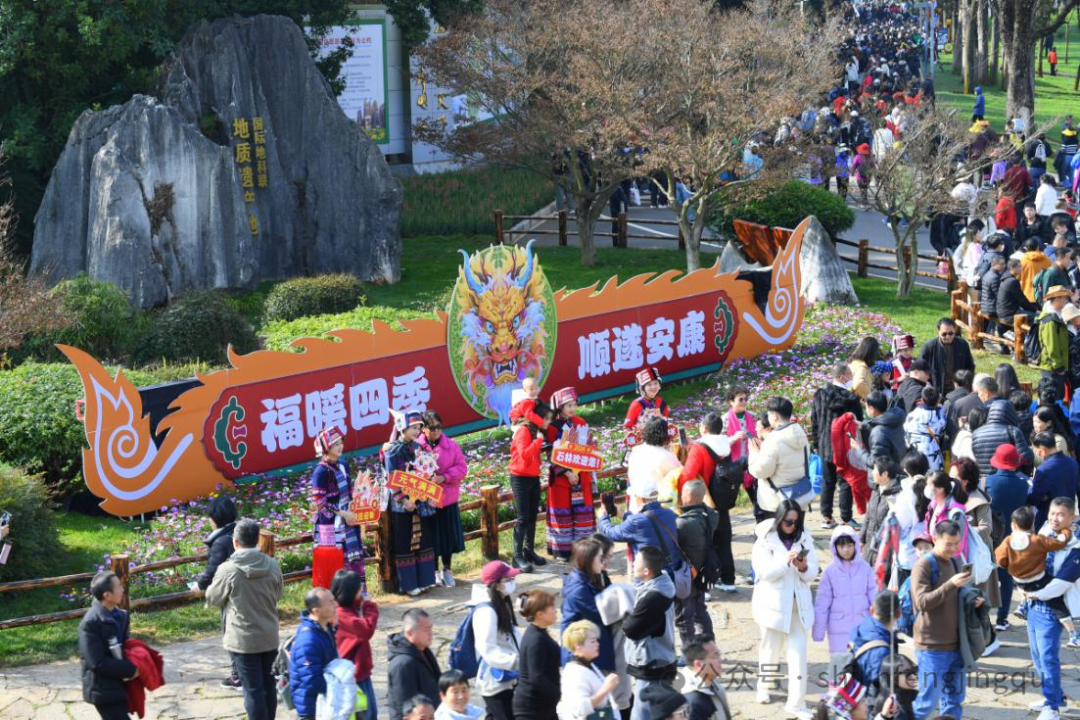 新春佳节的石林景区,处处张灯结彩,鲜花绽放,丰富的节庆活动精彩纷呈,透着浓浓的年味。身着节日盛装的彝家阿诗玛、阿黑哥在人群中击鼓舞龙、载歌载舞,演绎着彝家撒尼人劳作、狂欢的民族文化,迎接着每一位到来的游客。