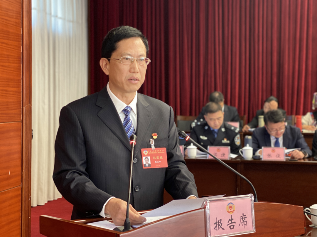 县政协主席陈永宁代表政协石林彝族自治县第十一届委员会常务委员会作工作报告。