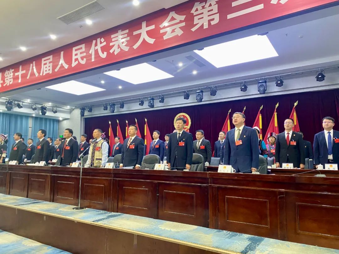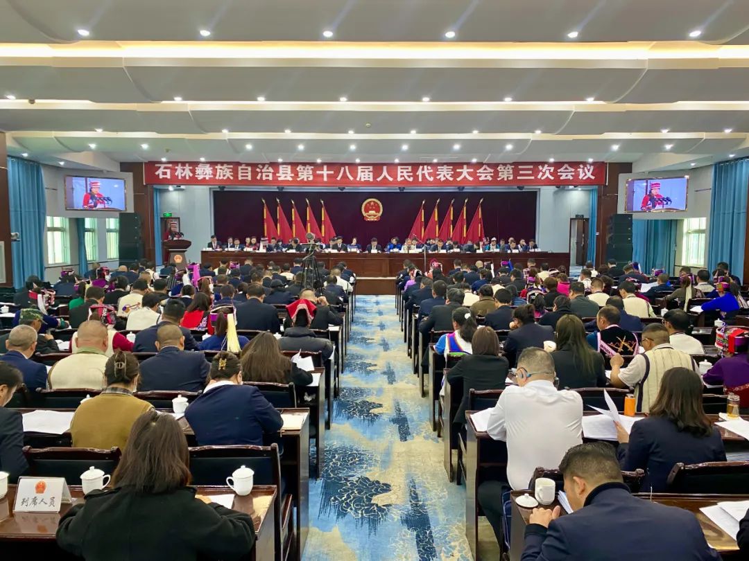 2月27日上午,石林彝族自治县第十八届人民代表大会第三次会议在石林德正会堂隆重开幕。