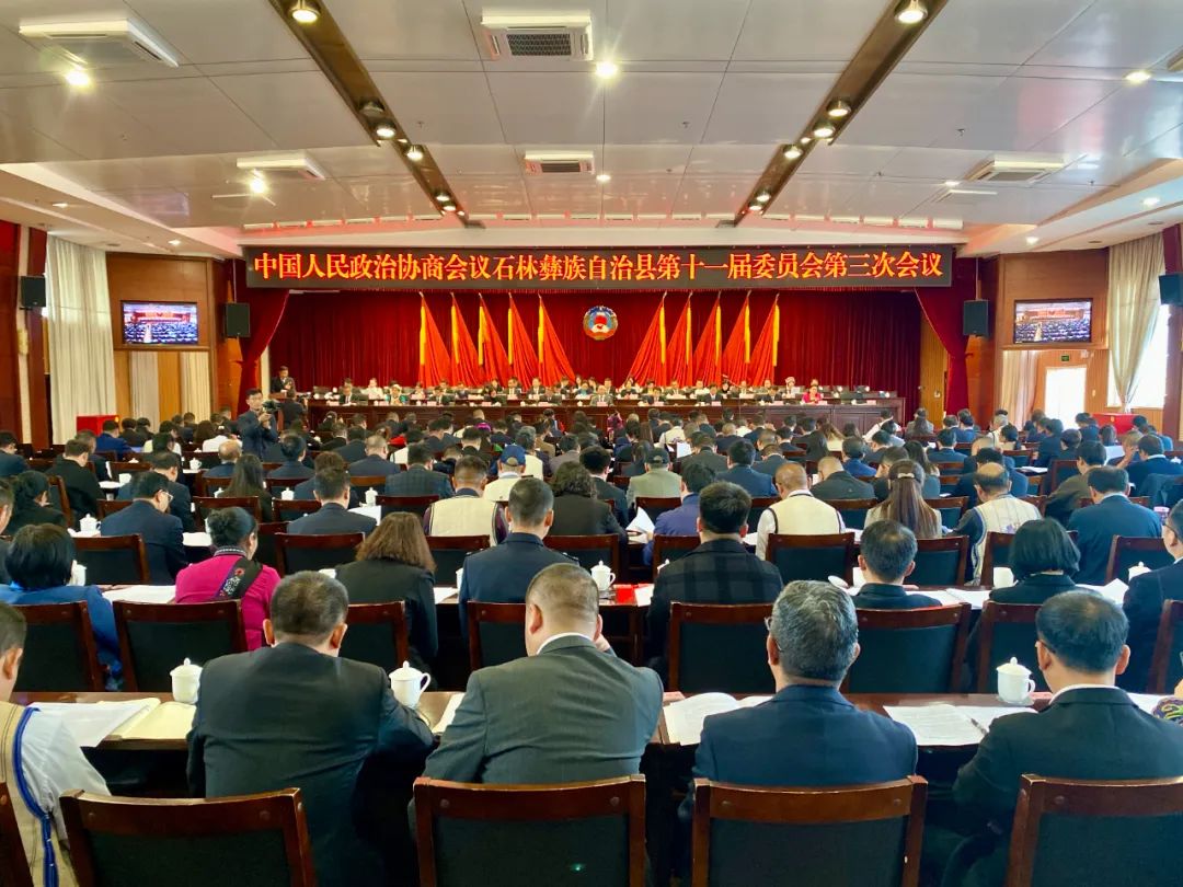 2月28日下午,政协石林彝族自治县第十一届委员会第三次会议圆满完成各项议程,在县行政中心报告厅胜利闭幕。