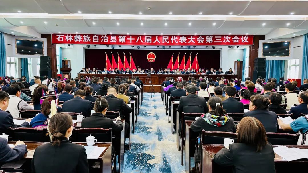 他指出,在全体代表和与会同志的共同努力下,石林彝族自治县第十八届人民代表大会第三次会议圆满完成了各项议程。会议期间,各位代表积极建言献策,共商发展大计,展现了奋发有为、昂扬向上的精神风貌。这次大会,开出了高举旗帜的政治自觉,开出了勇毅前行的坚定信心,开出了团结奋斗的良好氛围,是一次民主团结、务实奋进、鼓舞斗志的大会。
