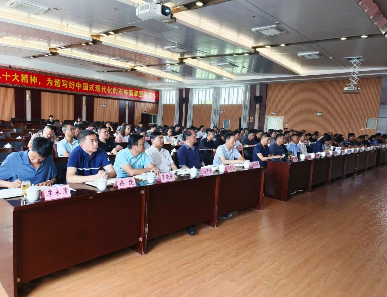 县委副书记、县长土绍芳主持会议并讲话。万春林、陈永宁等县委理论学习中心组成员;其他县级领导;云南石林产业园区党工委委员;县人大办、县政府办、县政协办主任及副主任,县委办副主任;各乡镇(街道),各园区,县委各部委办局、县级国家机关各办局,各人民团体、县属企事业单位党政主要领导等参加会议。