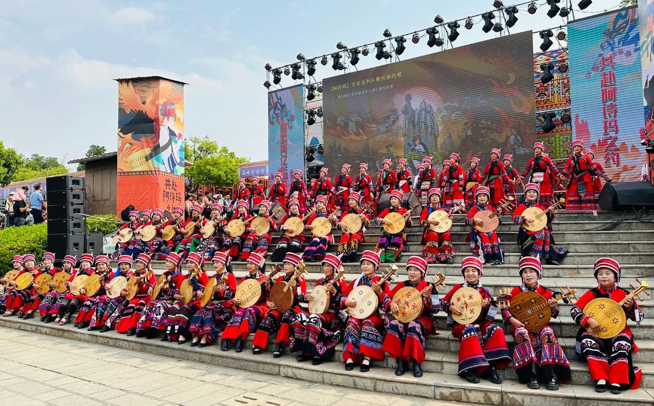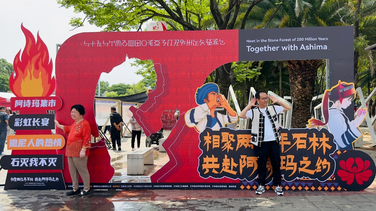 开幕式上,《阿诗玛》文化系列片段传承传唱,深情演绎了阿诗玛的故事,带领大家一同感受彝族撒尼人民在历史长河中的坚韧不拔和积极向上的乐观精神。大三弦舞、霸王鞭舞等一系列节目陆续登场、精彩呈现,将现场气氛点燃,让广大游客朋友沉浸式体验“阿诗玛”文化,真切感受到彝族撒尼人的热情。