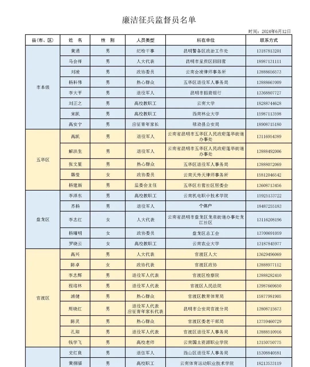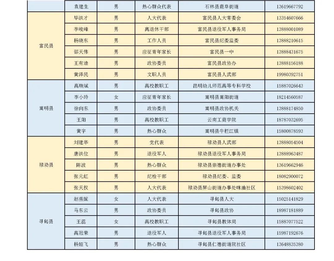 全市廉洁征兵监督员名单