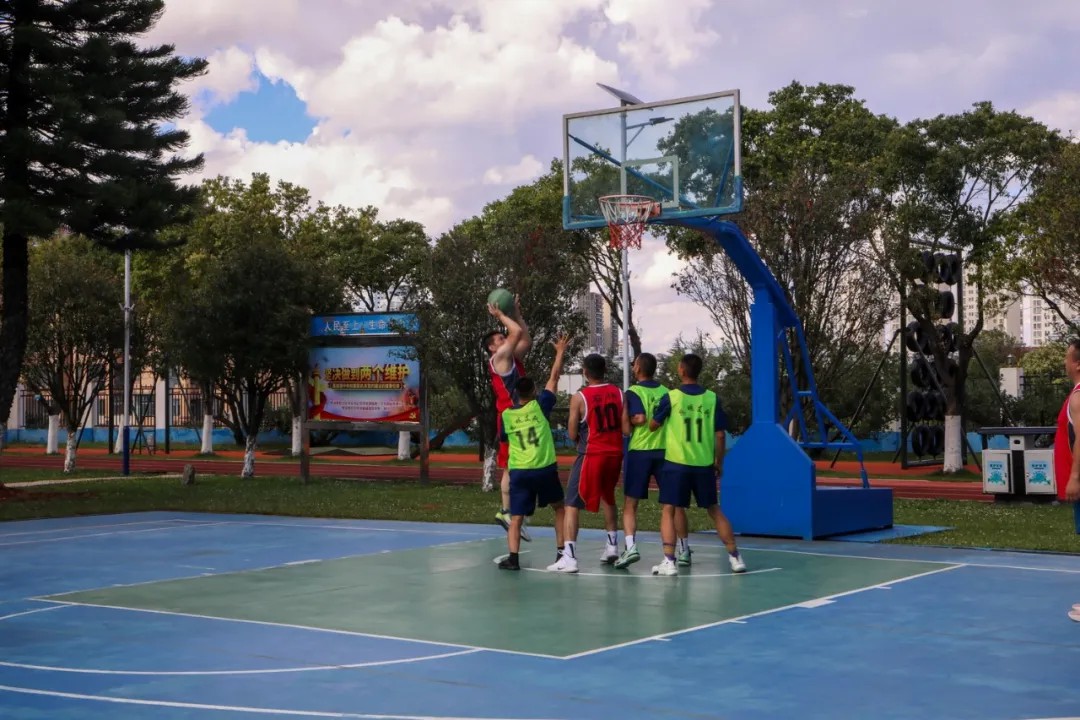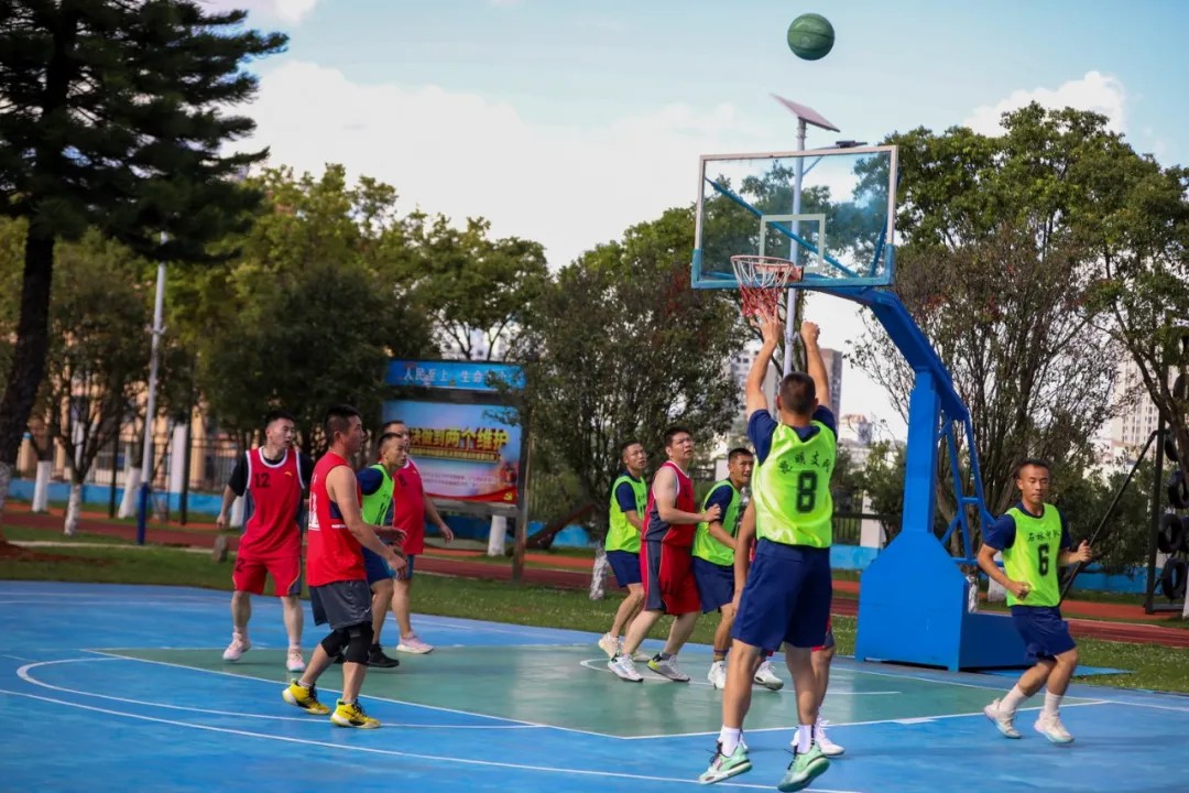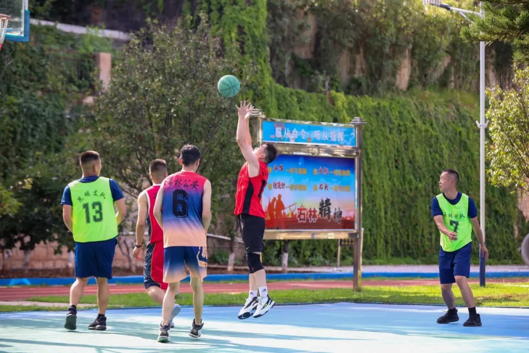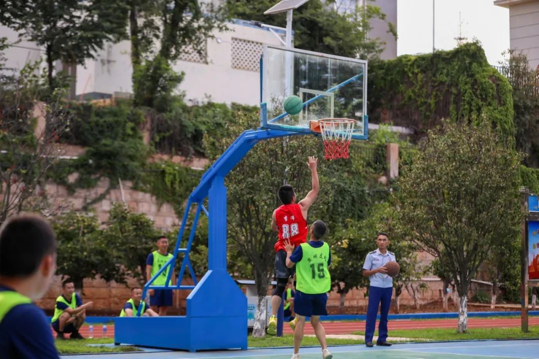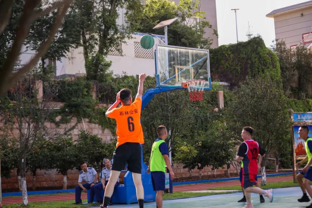 最后,开展篮球友谊赛。一到球场,队员们纷纷开始紧张地进行拉伸、压腿、慢跑、投篮等赛前热身。裁判一声哨响,队员们便迅速展开激烈的攻防角逐。传球、接球、投射,进攻、拼抢、回防——场上球员们激情四射、士气高涨。砰!石林县森林消防中队一记精彩的三分球命中,瞬间点燃了沉寂的球场!石林县公安局的球员们也毫不示弱,利用过硬的身体素质迅速占据内线优势抢得篮板,反攻、防守轮番上演,双方不断打出一波又一波的小高潮。球场上,加油声、呐喊声、欢呼声此起彼伏,比赛在“友谊第一”的热烈氛围中圆满结束。