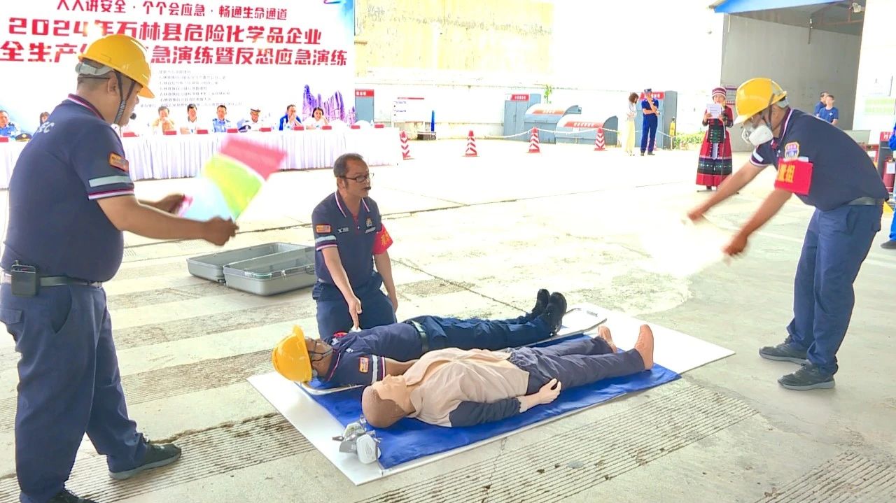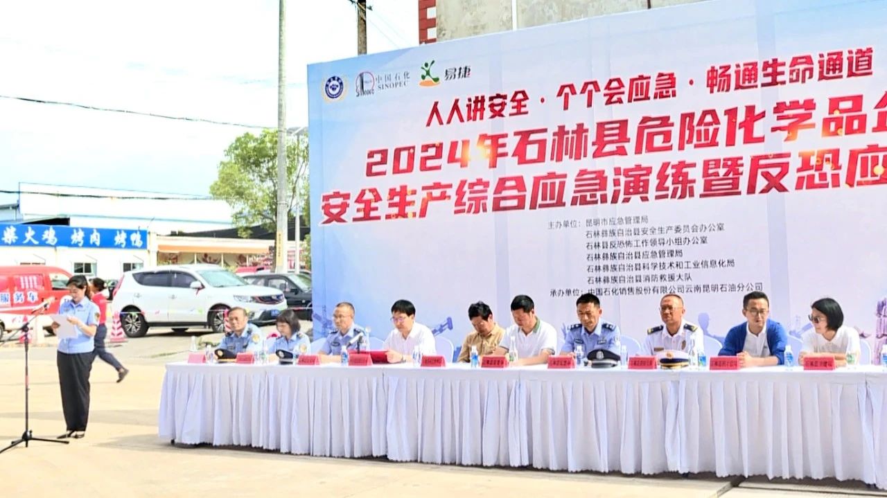 “有人晕倒了,快拨打120急救电话!”随着救护车鸣笛声响起,6月20日上午,石林县在中国石化销售股份有限公司云南昆明石林华源加油站组织开展的危险化学品火灾事故应急救援和反恐应急救援演练活动拉开序幕。
