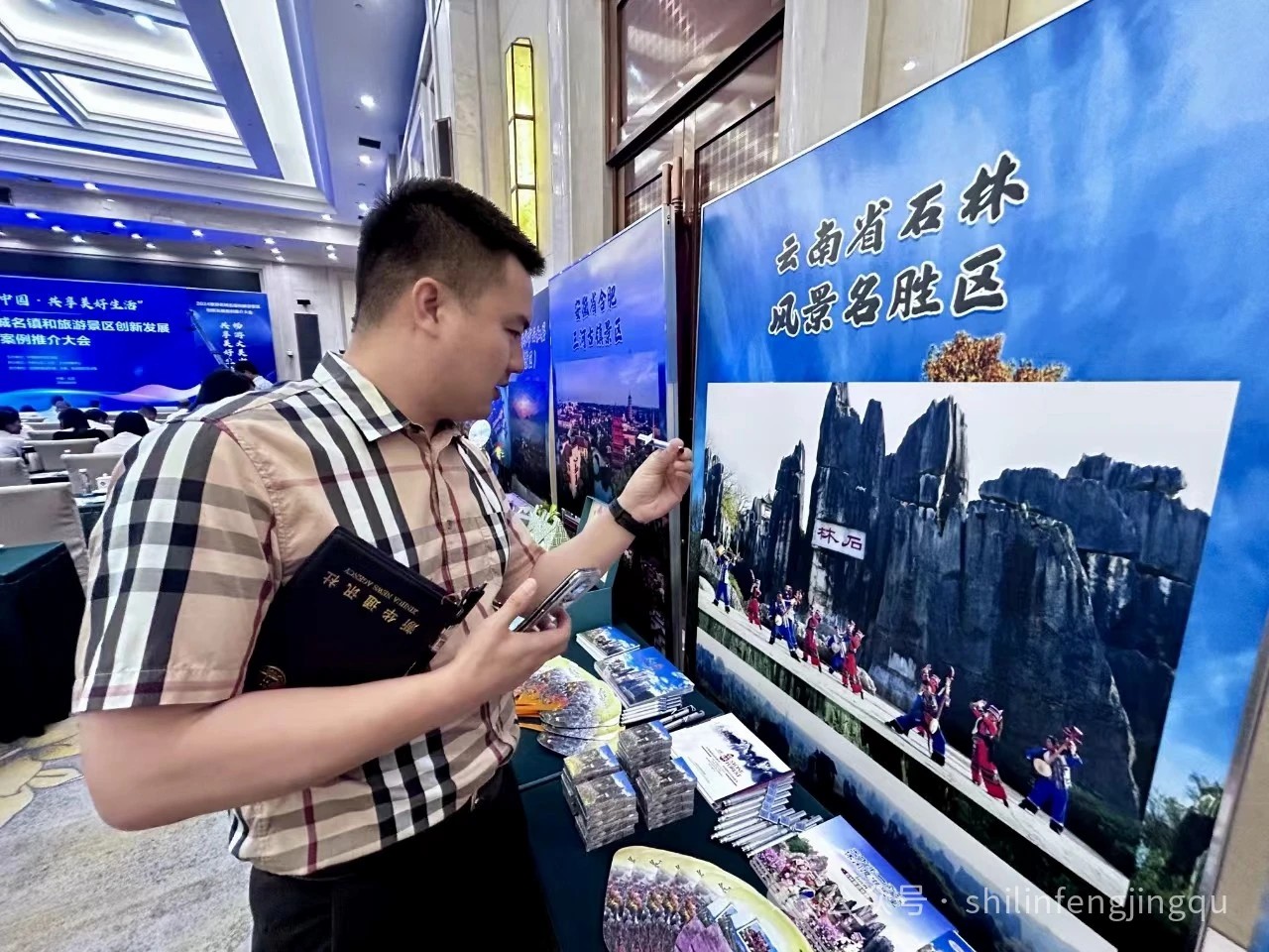 推介会上,石林风景区通过宣传画册、旅游导览、明信片以及各类文创产品,全方位展示石林景区自然景观与人文风俗相依相融的独特魅力,吸引了不少参会嘉宾的眼球。