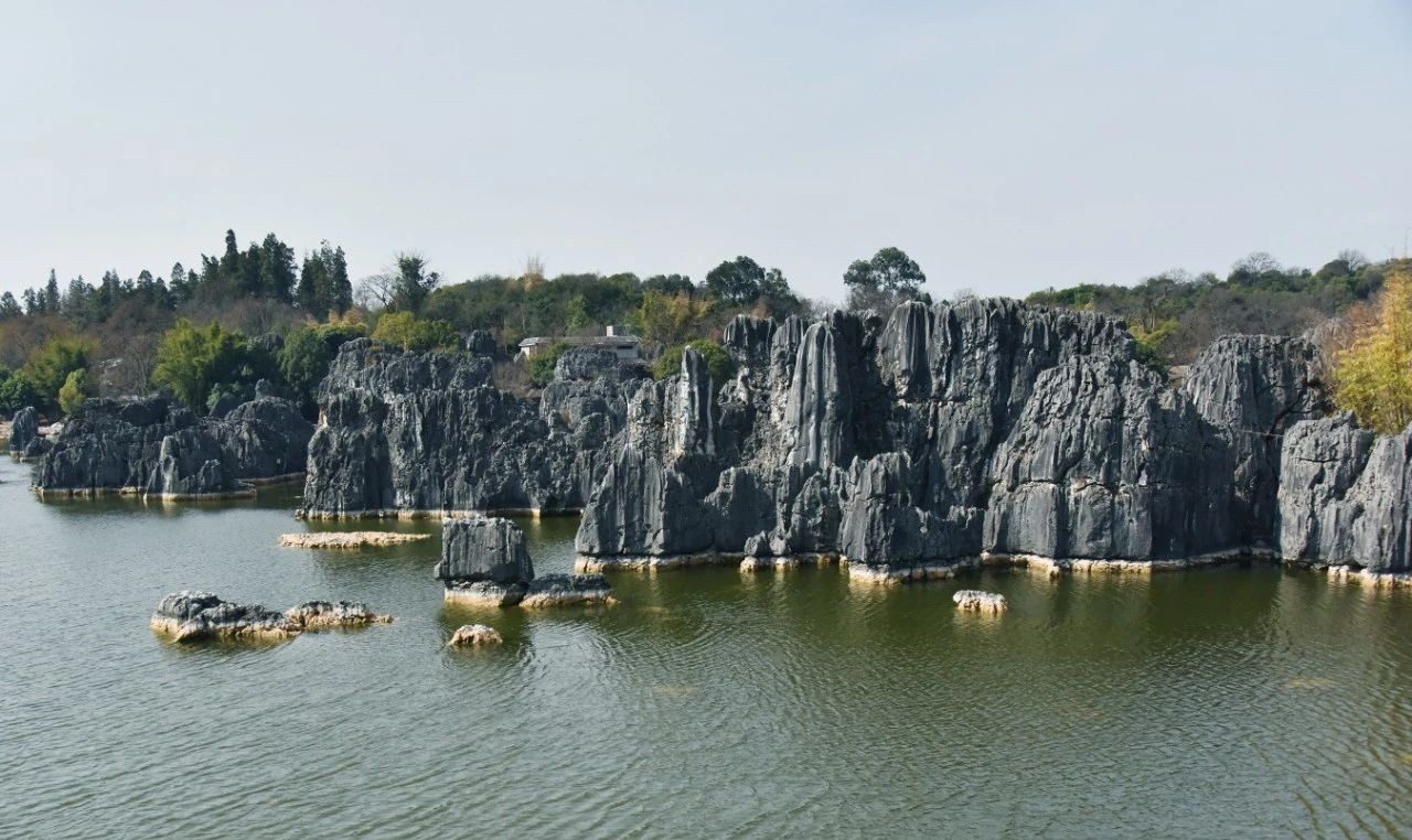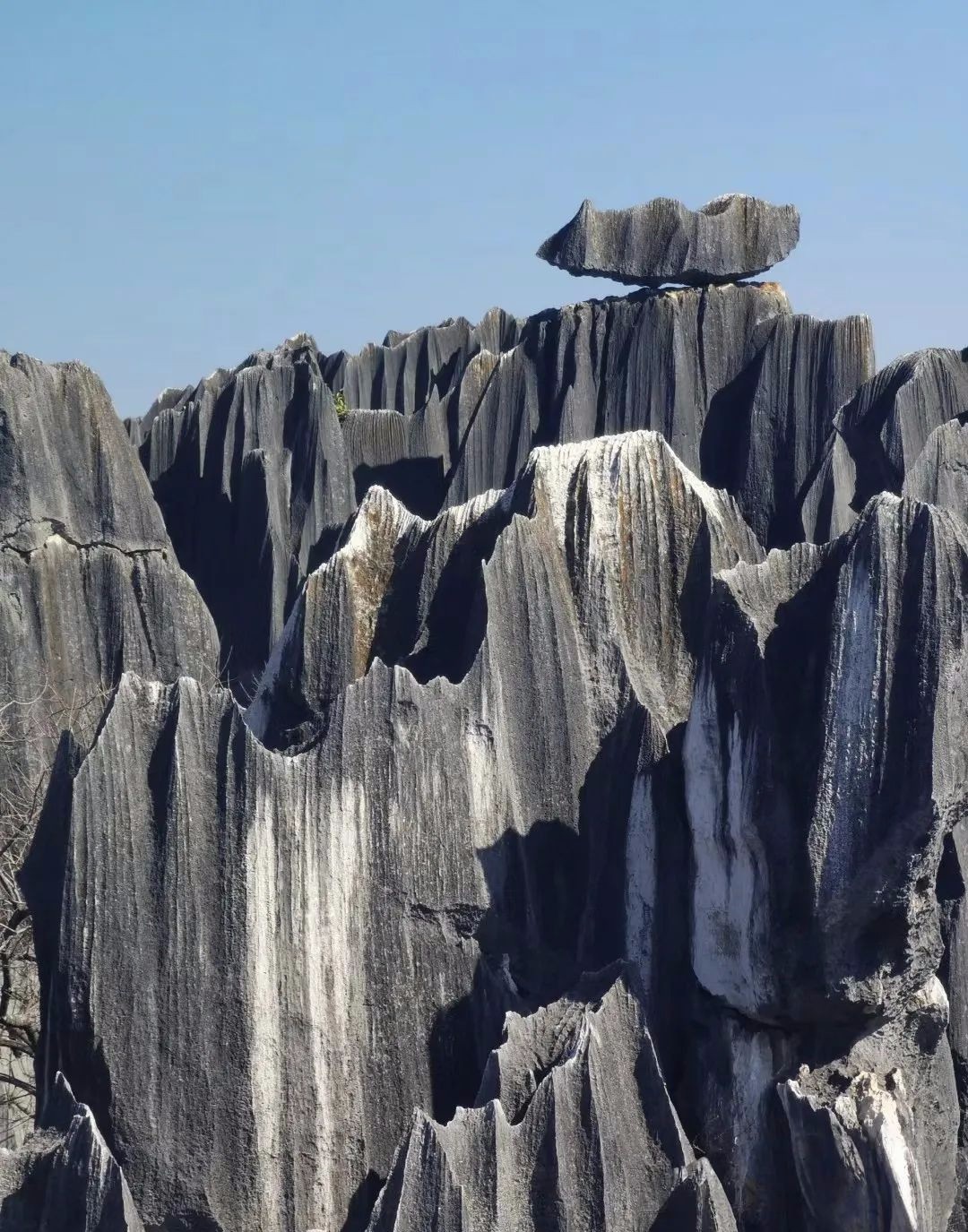 石林风景名胜区,是世界上最典型的喀斯特地貌景区,也是世界上罕见的以石林发育遗迹系列展现地球演化历史的喀斯特地貌区。石林喀斯特地貌地质景观由高大的石灰岩熔铸密集组合而成,呈鳞状分布,类型多样、气势恢宏。从上往下看,就像一片灰色的森林。