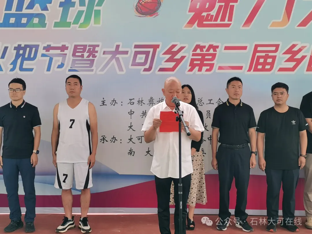 大可乡党委书记毕绍军致开幕词:大可“乡BA”篮球赛作为我乡最具规模和影响力的体育赛事之一,旨在为广大篮球爱好者搭建交流技艺的平台,传递健康、运动、阳光的生活方式,进一步打造“篮球之乡”的知名度和美誉度。