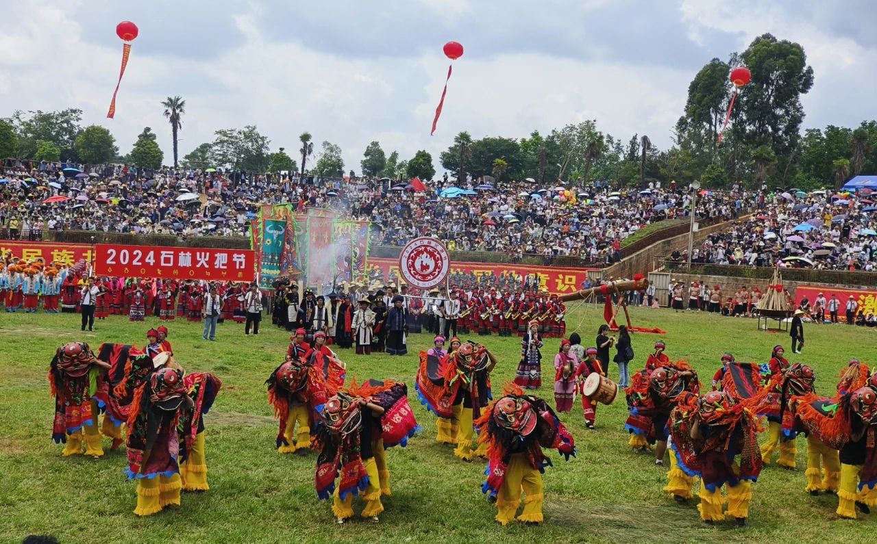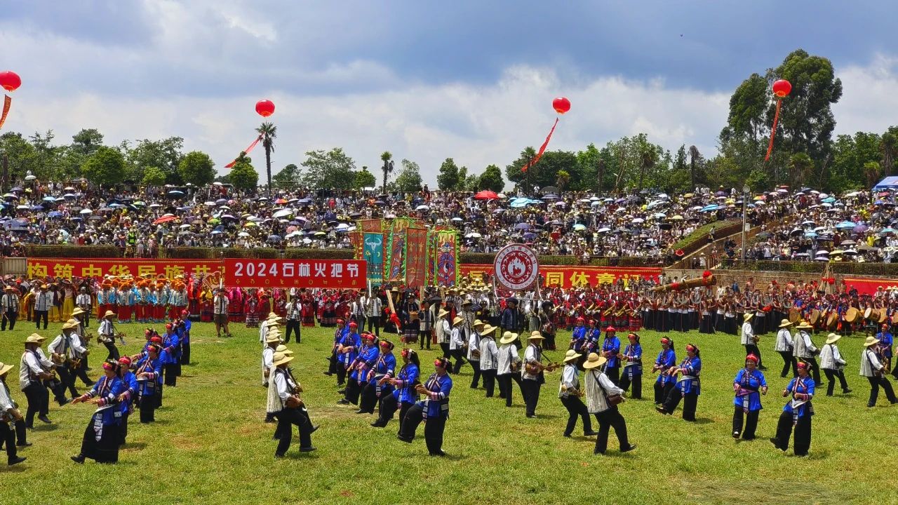 7月29日下午,伴随着铿锵的鼓点和响亮的号角,2024石林火把节在长湖民族文化体育场隆重开幕!石林各族人民身着节日盛装和四海宾朋欢聚一堂共度佳节。