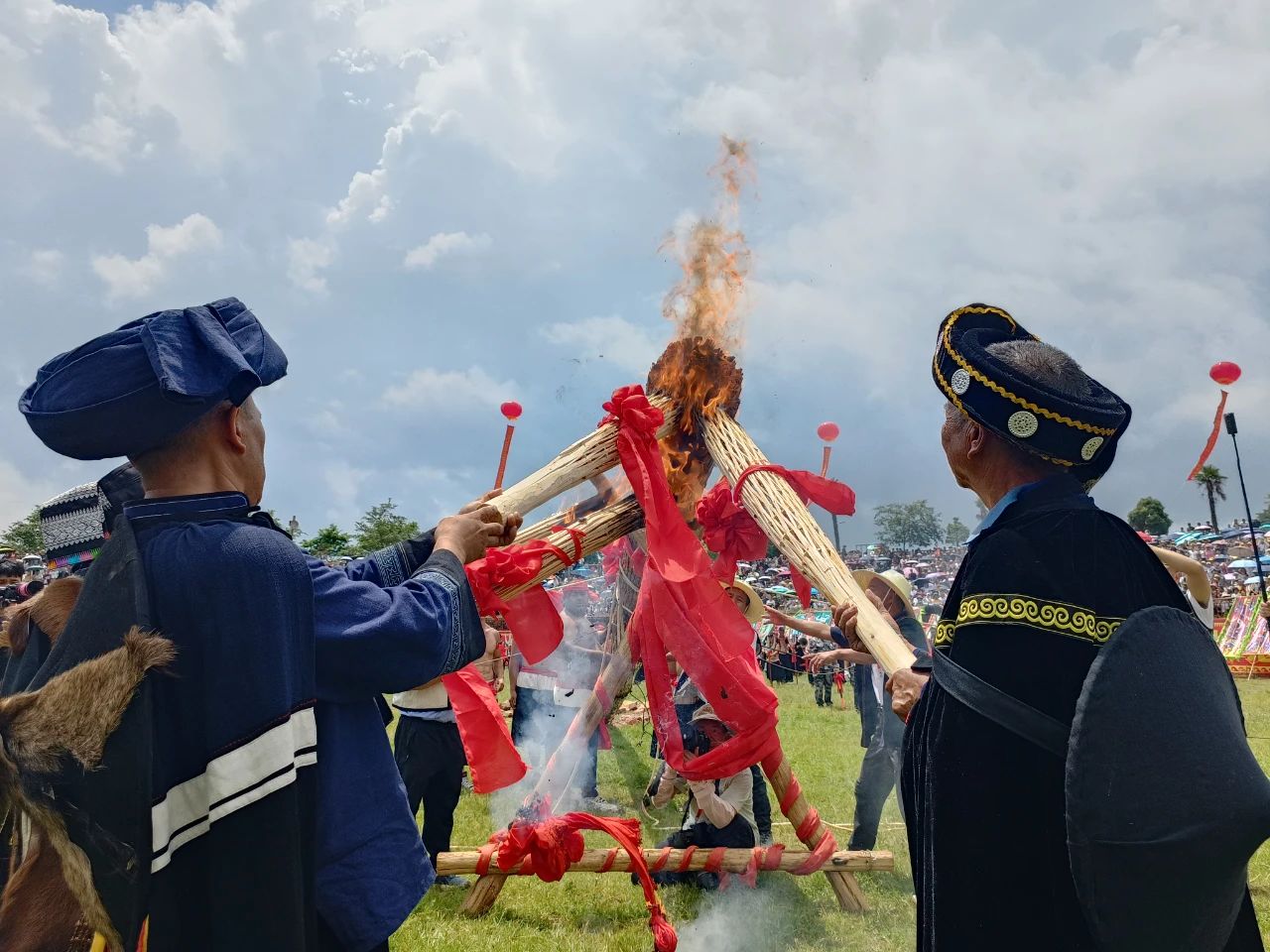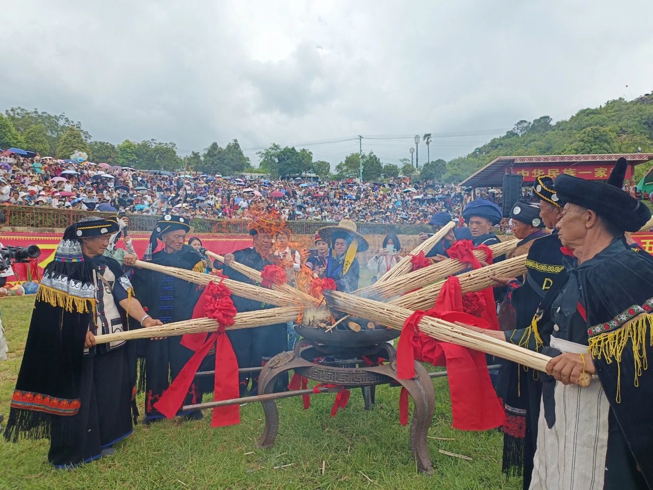 县委、县人大、县政府、县政协主要领导共同点燃了场地中央矗立的主火把,神圣的主火把高12.18米,它象征着石林彝族自治县的成立日——1956年12月18日。