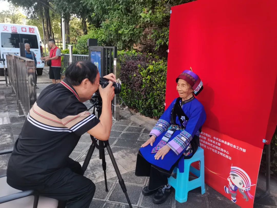 8月28日上午,石林县“情暖夕阳・及人之老”公益摄影文明实践志愿服务第一阶段活动在小乐台旧社区圆满收官,本轮活动共开展11场次,为鹿阜街道11个社区60岁以上老年人拍照,累计拍照人数近800人,照片由中国电信石林分公司出资打印装框免费发放;并由中国电信石林分公司、石林天奇医院、欧维欧口腔医院、康益佳大药房、辰启视觉石林中心及县公安局交警大队、县综合行政执法局同步开展电信上门服务、爱心义诊及文明交通、文明养犬、垃圾分类宣传等志愿服务,累计服务群众6000余人次,为石林社区群众特别是老年人送去了一份份贴心的关怀与温暖。