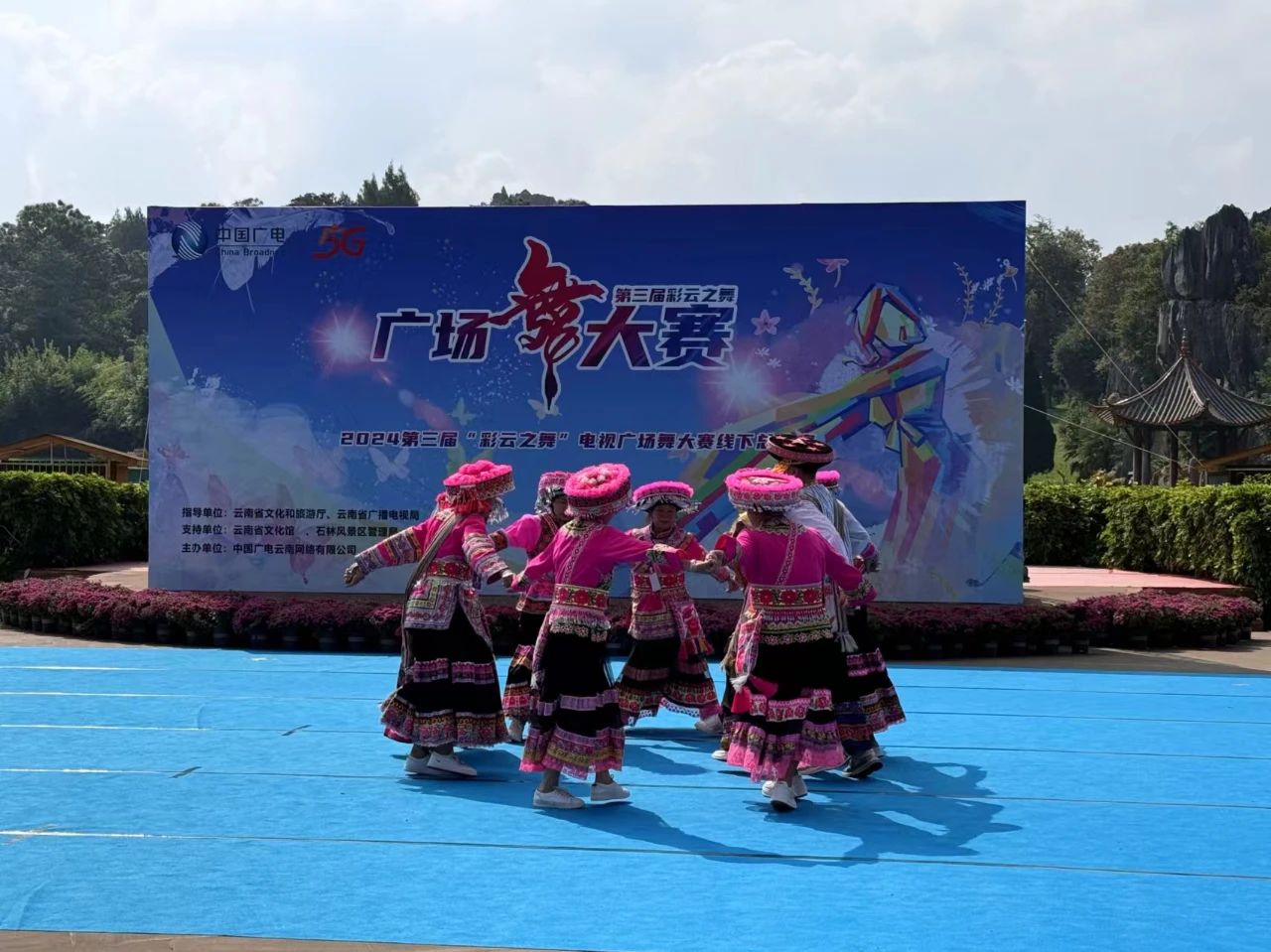 在这个秋高气爽、阳光明媚的季节,2024第三届“彩云之舞”电视广场舞大赛的线下总决赛在风景秀丽的石林风景区盛大开赛。本次大赛围绕“有一种叫云南的生活”主题,由云南省文化和旅游厅、云南省广播电视局指导,云南省文化馆支持,中国广电云南网络有限公司主办,旨在丰富群众文化生活,推广全民健身运动,以广场舞活动为载体,全面展示云南多元的民族文化独特魅力。