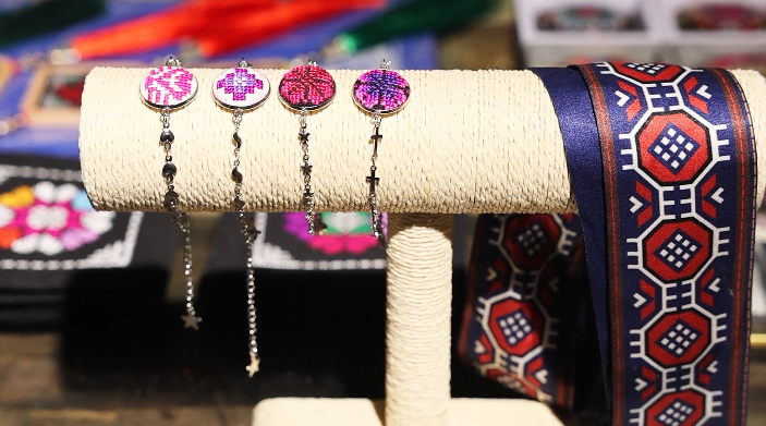 “传统的彝族撒尼刺绣一般多用于服饰,如果想让更多的人或是更多的年轻人认识并使用,让它活态传承下去,就需要让它跟现代的产品相结合,融入到日常生活当中去。在我加入工坊以后,就设计了现代化的一系列手工艺产品,如收纳盒系列、首饰系列,还有一些日常生活当中用到的小物件”。钱茜蔓说,今年是她跟随毕跃英学习彝族(撒尼)刺绣的第5年了。