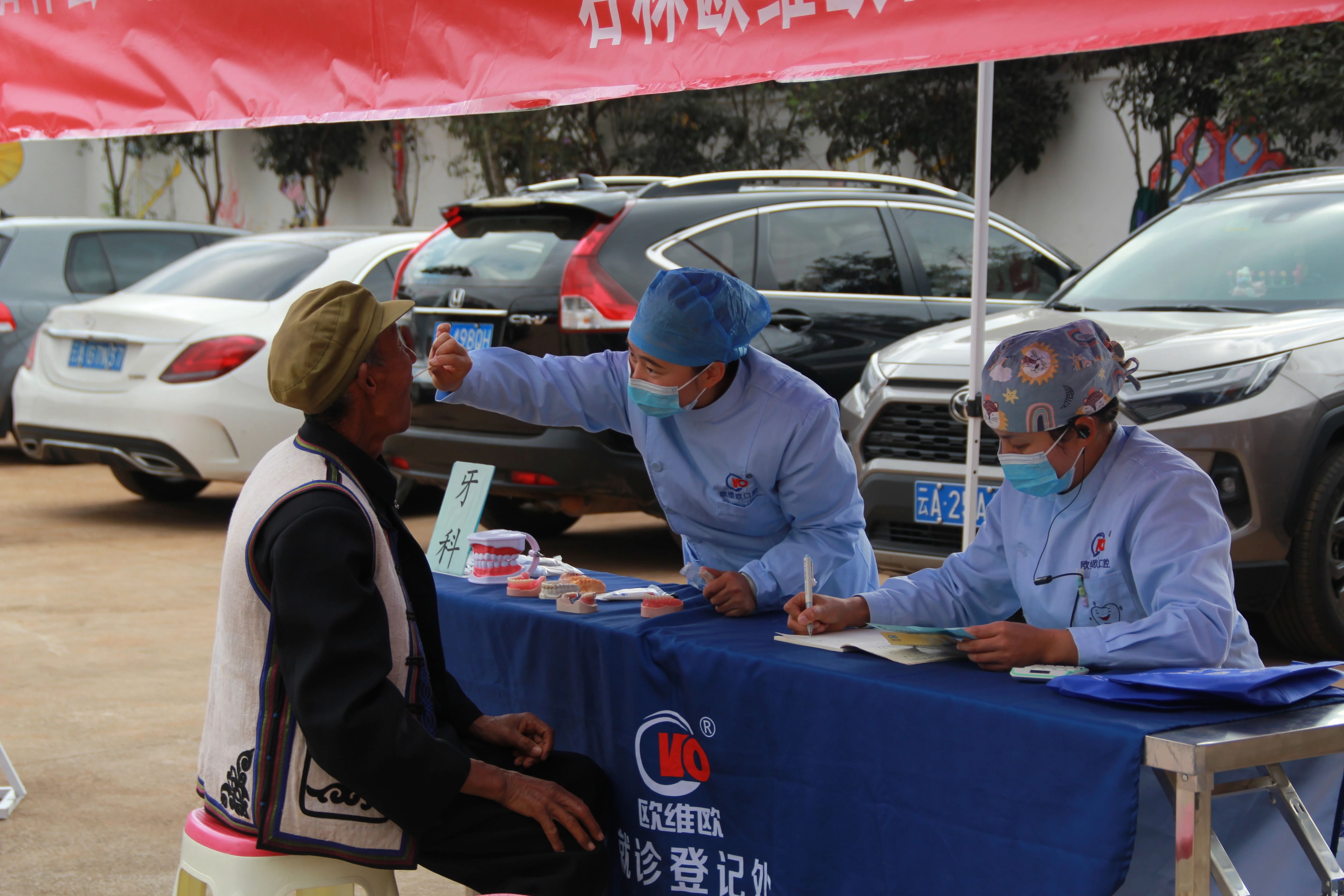 石林县人民医院医务人员为群众免费测量指尖血糖、血压,并进行B超、心电图检查,提供专业的医疗咨询和初步诊断服务。针对群众的健康状况,结合日常饮食、运动锻炼、疾病预防等方面给出科学建议,帮助居民建立健康的生活方式。针对老年群体高发的心脑血管疾病展开宣讲,内容涵盖相关病因、临床表现、控制方法、用药误区和生活方式干预等。石林欧维欧口腔医院也到场开展口腔健康检查。义诊医生讲解耐心服务到位受到群众的一致好评。