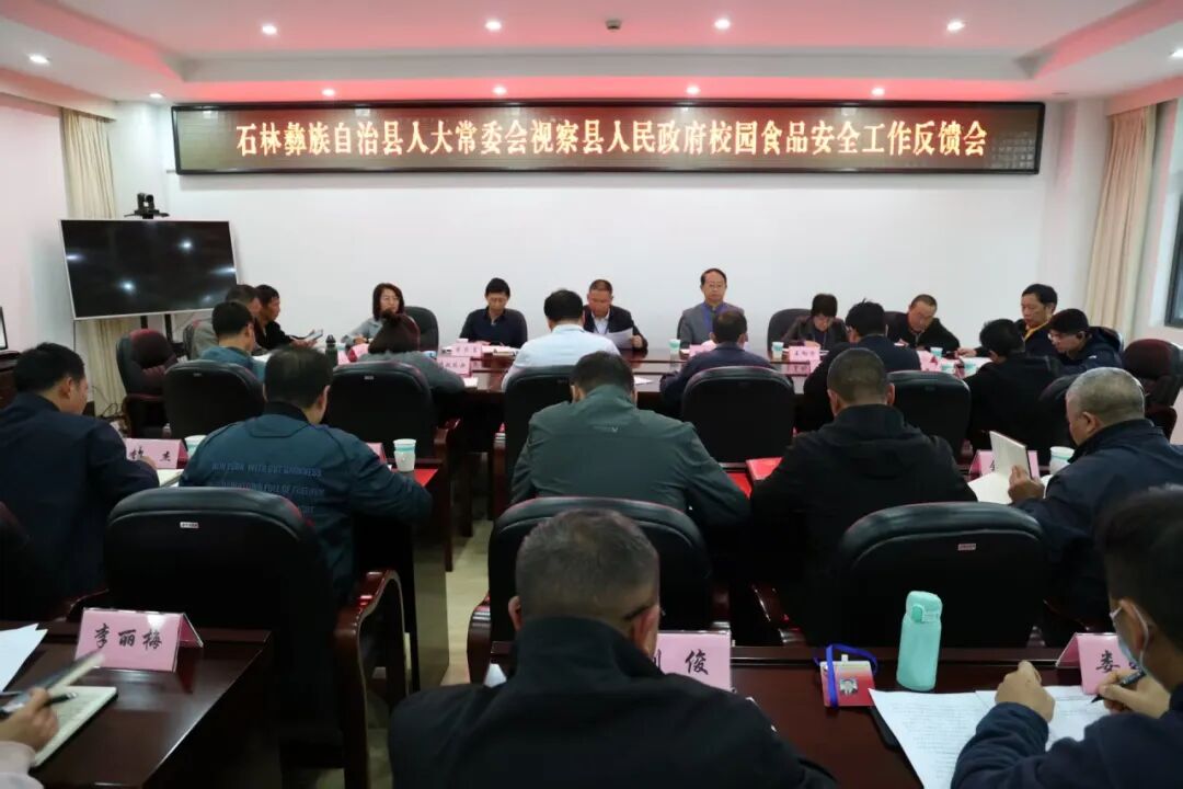 视察组听取了县人民政府关于全县校园食品安全工作情况报告。深入大乐台旧小学、鹿阜中学、集采集配中心、县市场监管局及校园食品供应企业,通过现场查看、询问交流等方式,详细了解学校主体责任落实、食材采购仓储配送加工制作、“互联网+明厨亮灶”监管平台运行等情况。