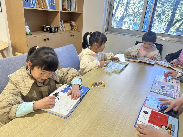 与剪纸区的热闹不同,阅读区始终萦绕着静谧的书香。社区工作人员提前筛选的书籍整齐排列在书架上,从适合幼儿的启蒙绘本,到青少年喜爱的科普读物,再到家长们青睐的文学经典,品类丰富的书籍满足了不同年龄段的需求。