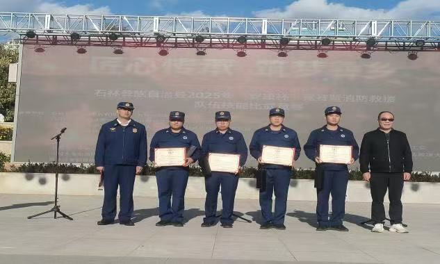 近日,石林县2025年“安康杯”竞赛暨消防救援队伍技能竞赛活动在赛场火热开赛,来自全县各消防队伍的精英们同台竞技、各展所长。圭山专职消防队参赛队员凭借精湛的业务技能、默契的团队协作和顽强的拼搏精神,在2人5盘水带连接单项科目中力压群雄,成功斩获第一名,用实力书写了新时代消防人的使命与担当!