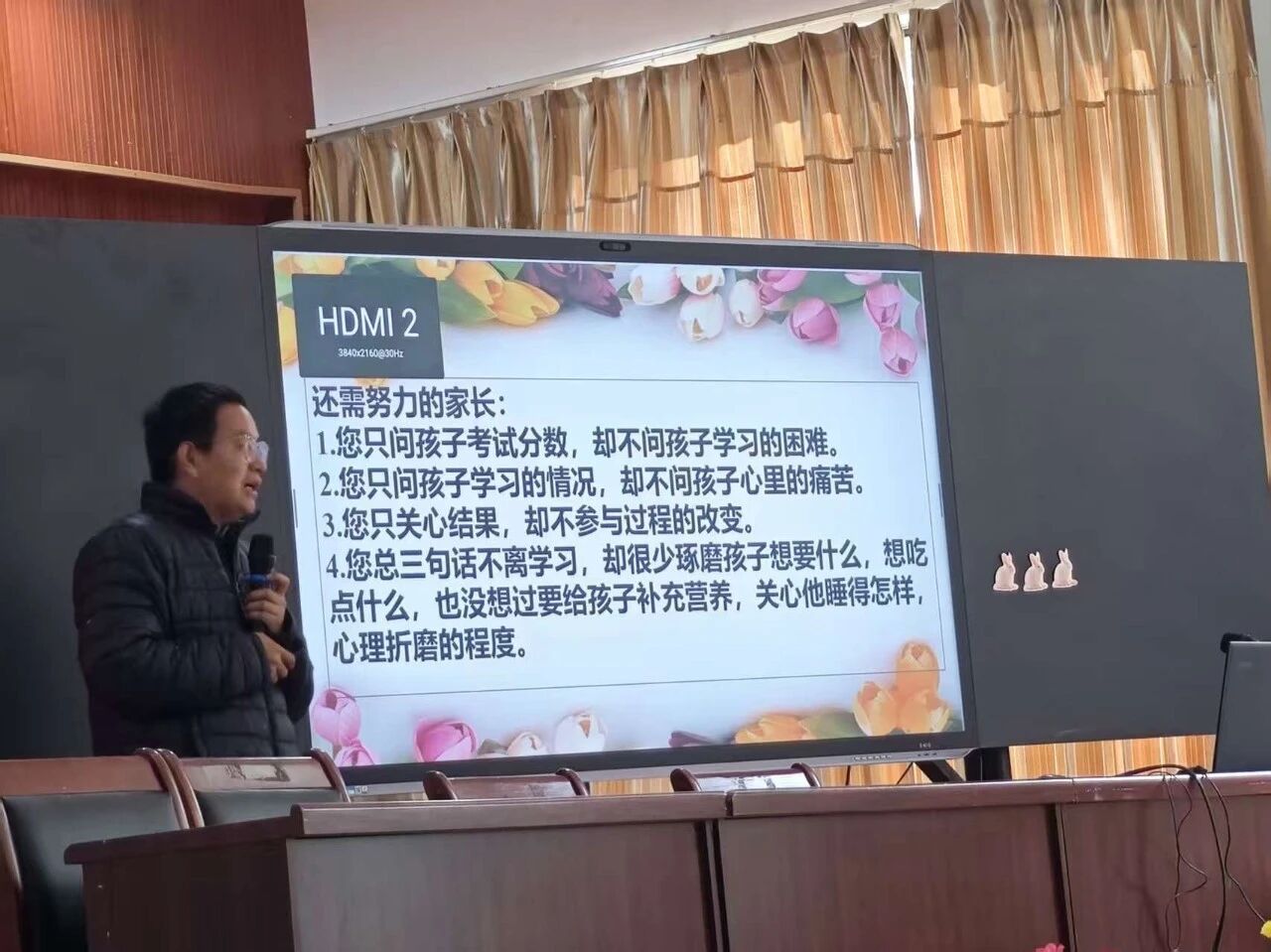 讲座伊始,谢老师以两封特殊的信件——罪犯儿子与企业家儿子写给父亲的信为切入点,生动诠释了家庭教育对孩子一生的深远影响,让现场家长深刻意识到“教育无小事,陪伴需趁早”。他结合当代家长普遍面临的困境:在生活重压下承载焦虑,却在育儿中陷入“付出多、回报少”的挫败感,而孩子的学习态度、电子产品沉迷、责任感缺失等问题,更让亲子关系雪上加霜,精准戳中了家长们的心声。
