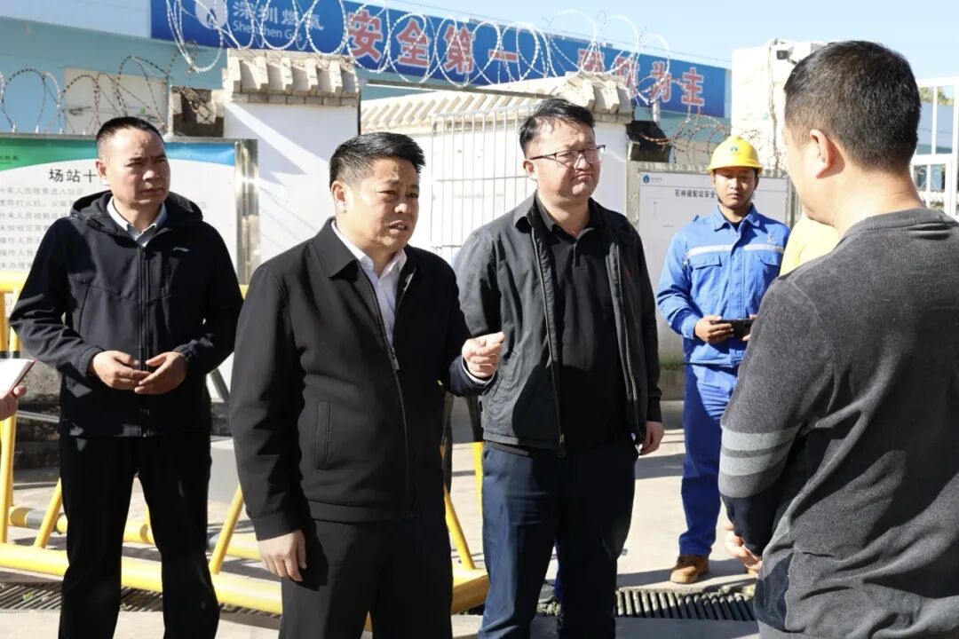 在石林深燃巨鹏天然气有限公司,杨泽松一行检查燃气安全生产、保供工作。杨泽松强调,要切实扛起安全生产主体责任,全力保障春节期间燃气安全稳定供应;要加快推进燃气管道建设,通过优化运营模式降低用气成本,提升服务质量,切实维护群众和企业用气权益。