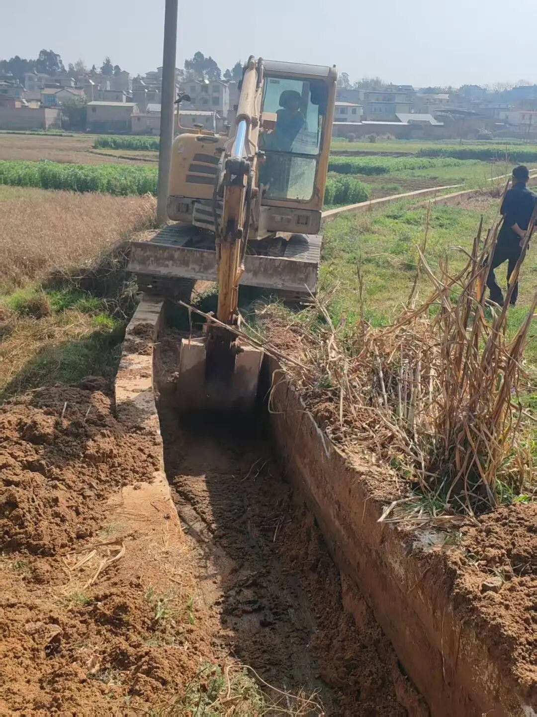 农田灌溉沟渠是农业生产的重要“脉络”,由于汛期冲刷和日常泥沙淤积,部分沟渠出现堵塞、排水不通畅等问题。为确保春耕生产用水无忧,各村(社区)迅速行动采取“机械作业+人工清理”相结合的方式,组织党员干部、村组干部和村民对辖区内主干渠、支渠等进行全面排查和集中清理10余千米。重点清除渠中淤泥、杂草及障碍物,修复损毁渠段,打通农田灌溉“最后一公里”。
