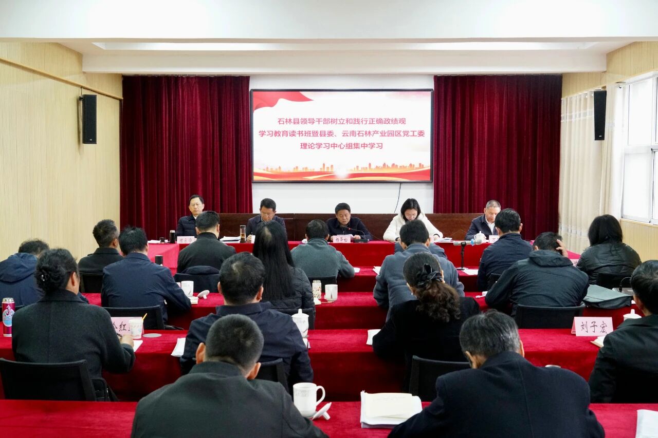 石林县领导干部树立和践行正确政绩观学习教育读书班暨县委、云南石林产业园区党工委理论学习中心组举行集中学习研讨。